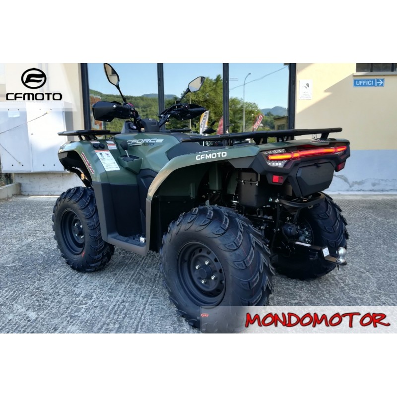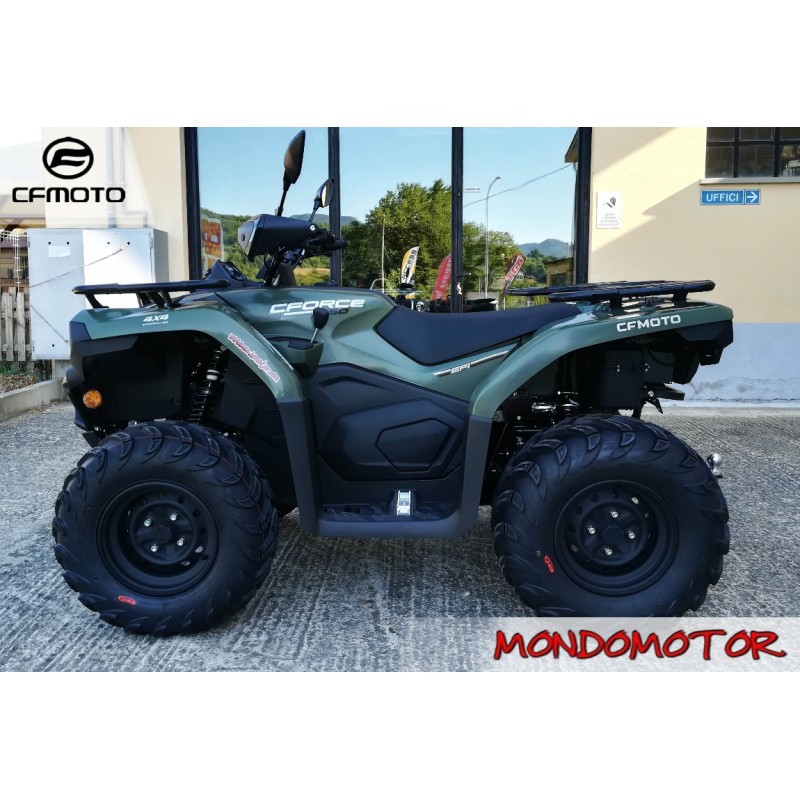 ATV 4x4 , stupendo restailing del primo entry level proposto CFMOTO alcuni anni fà. Un ottimo ATV per chi non vuole investire una grossa cifra. Omologazione Euro 5. Differenziale posteriore bloccabile on demand e lo stesso per la trazione sull'asse anteriore anchessa inseribile manualmente. Sospensioni indipendenti. Ottima maneggevolezza!
