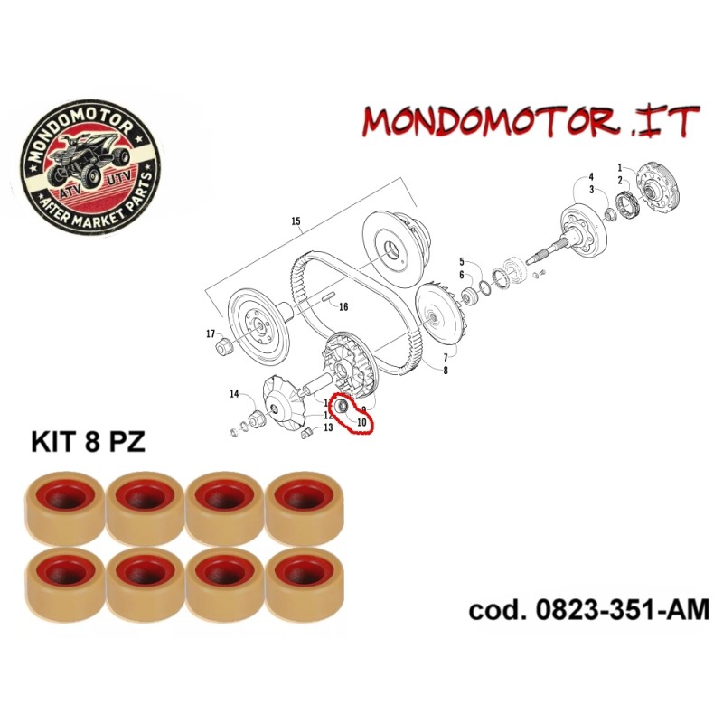 CORRISPONDE AI RULLI MONTATI DI SERIE DA ARCTIC CAT COD. 0823-351